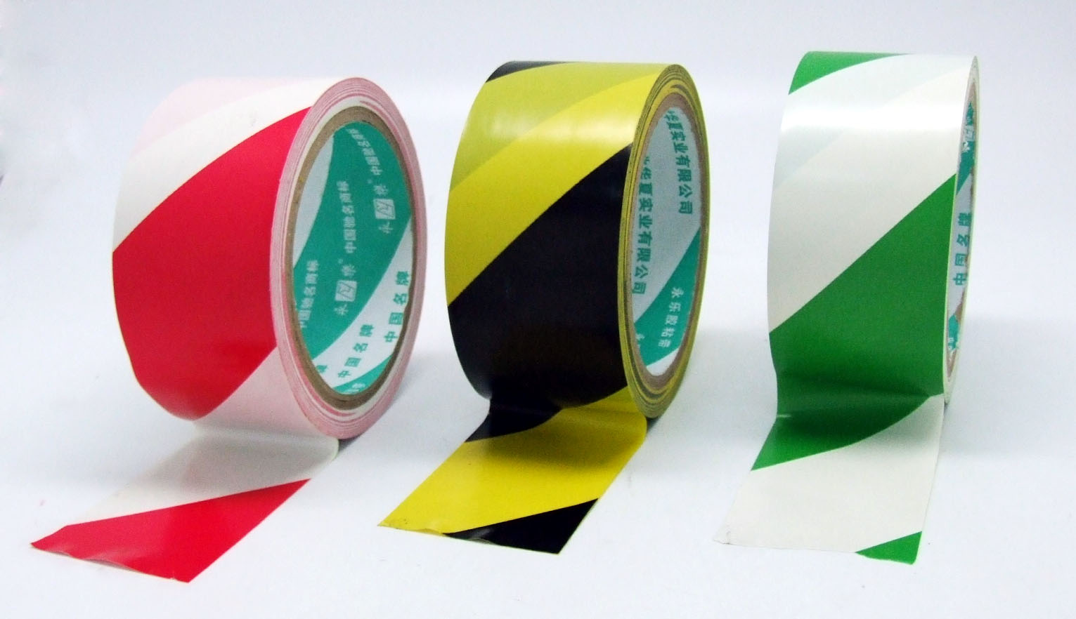 各色的警示膠帶(warning tape)黃黑警示,全紅警示,全黃警示,綠白警示等:粘貼于地上、墻上和機(jī)器上起禁止、警示、提醒和強(qiáng)調(diào)作用(PVC warning tape)